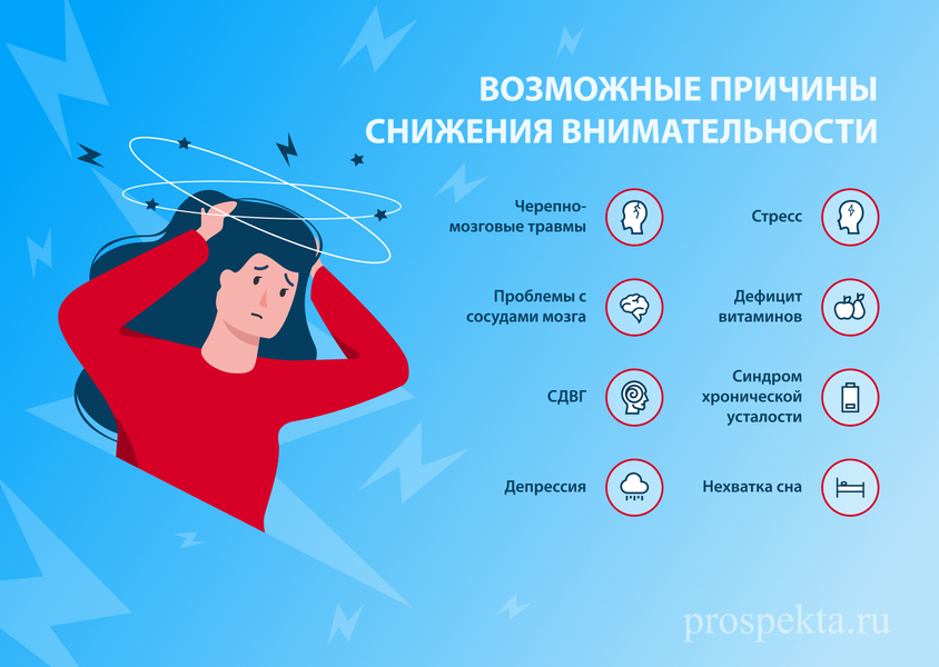 Люди часто связывают рассеянность и сопутствующую ей привычку откладывать дела на потом с собственной ленью. Однако, плохая концентрация внимания чаще всего вызвана конкретными причинами. Они бывают физиологическими – то есть являются естественной реакцией организма на определенное временное состояние, например, недосып. И патологическими – вызванными болезнью1.