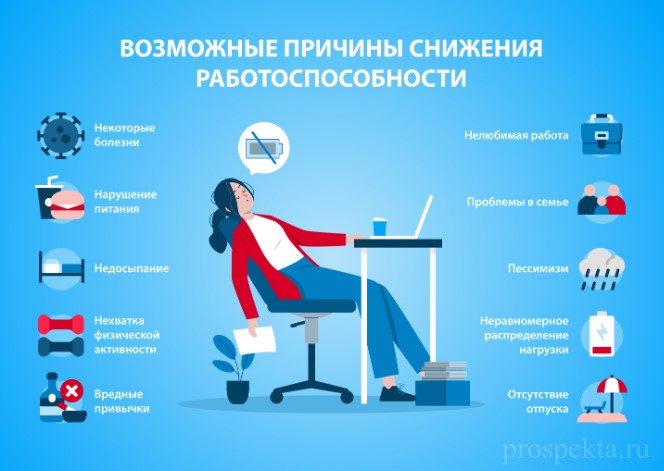 К факторам, которые способствуют снижению работоспособности, относятся: